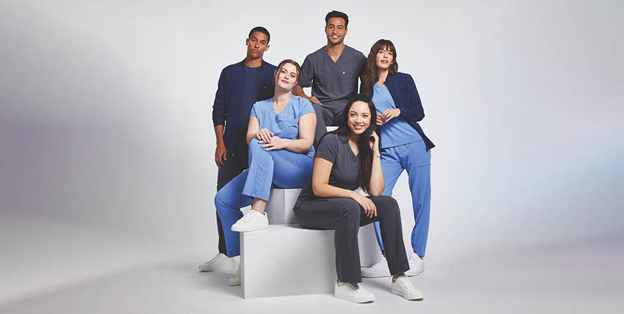 This luxurious collection offers two different scrub top styles, a choice of stylish boot-cut trousers or sports-luxe joggers, a warming under layer and a sophisticated zip jacket to really elevate your look. For a masculine fit, the range offers the timeless cargo trousers, modern V neck scrub top and a three pocket jacket.